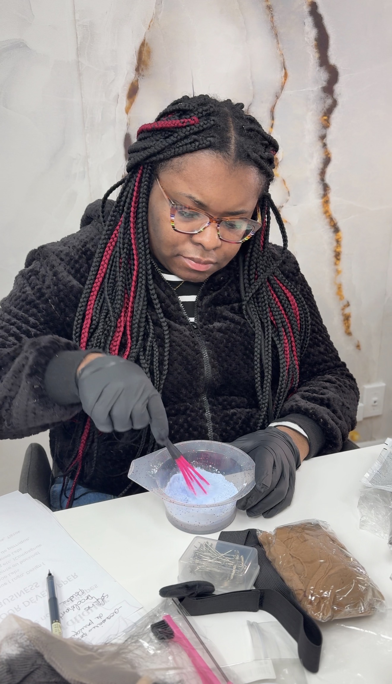 - Glue application (got2b, Bold Hold, Ghost Bond)